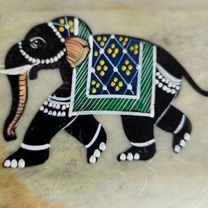 Marble Alabaster Stone Green Chest Jewelry Trinket Box wit Elephant.