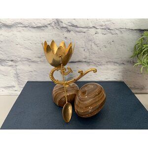 Marble Egg Gold-toned Stand Gold-Toned Spoon Matching Marble Stand Vtg
