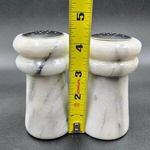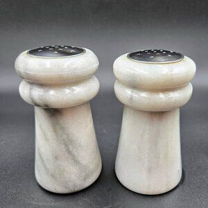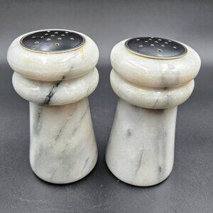 Marble Salt & Pepper Shakers White Grey Heavy Set Read