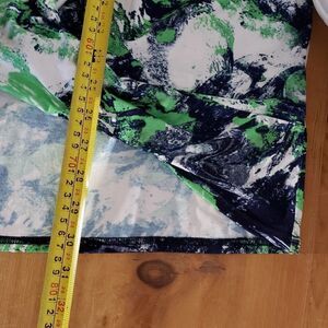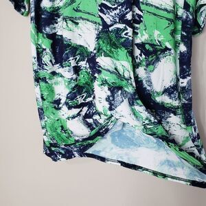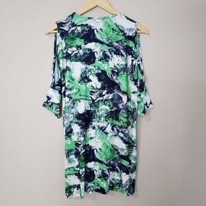 Marble Short Sleeve Oversized Cold Shoulder Green Blue Tunic Top Small XSmall