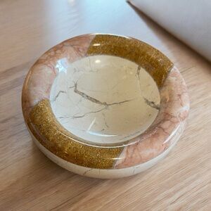 Marble/Stone Decorative Shallow Trinket/Key/Ring Bowl in Cream/Gold/Pinks