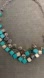 Marbled turquoise blue silver tone square cubed rhinestone necklace earrings set