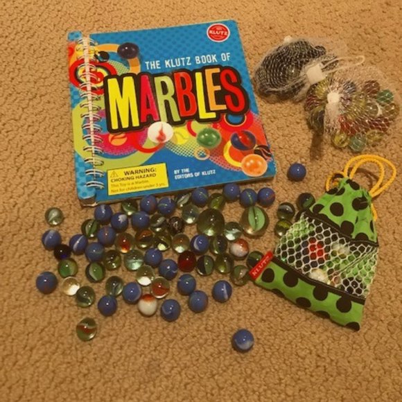 -The Klutz book of marbles (Scrumple, Knuckle, Bun Hole, Puggy, Holy Bang, and, of course, Newark Killer. If any of these sound unfamiliar to you, it's time you brushed up on your marbles games. Fortunately, they're all here and more - the 20 most popular marbles games in the galaxy, to be exact. The Klutz Book of Marbles is written and illustrated (in full color) by the formidable Klutz team and packaged with 14 of the most amazingly colorful marbles we could find. Plus a drawstring fabric pouch to keep your winnings in.