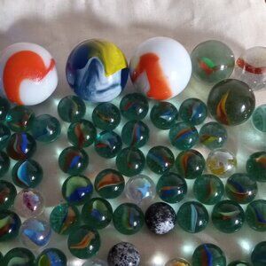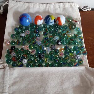 Vintage Mixed lot of Glass Marbles 122 small, 3 med size, 3 large and 1 extra large. These have been hanging around FOREVER!! Comes from a smoke free home