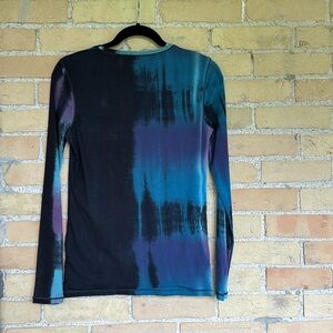 Excellent condition. Elevate your wardrobe with this chic long sleeve top. Featuring a blend of blue, purple, and black, this top is perfect for any occasion. Enjoy a comfortable fit and stylish design.