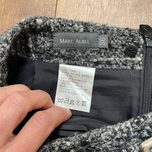 Marc Aurel mini wool skirt black white grey textured fixed belt lined sz 4
