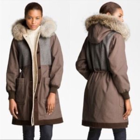 Marc By Marc Jacob Cotton-Wool Colorblock Pattern Parka Coat XS