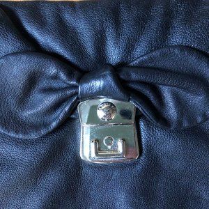 Chic meets playful in this Marc by Marc Jacobs black leather clutch. Crafted from soft, high-quality leather, this bag features an elegant oversized bow detail on the front and a polished silver-tone push-lock clasp for secure closure. The chunky chain strap adds a modern edge—wear it over the shoulder or tuck it in to carry as a clutch.