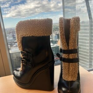 Marc By Marc Jacobs NWT 39 (8.5) patent leather and shearling platform boots
