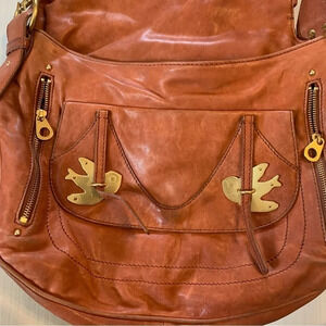 Two front zip pockets and brass bird details put a twist on the signature Marc By Marc Jacobs Natasha bag. Details include adjustable shoulder strap, brass hardware plus lined interior with zip and cell pockets.