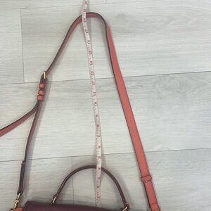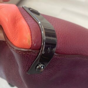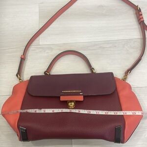 Marc by Marc Jacobs tri color leather sheltered island satchel with a flap with push lock closure and gold/ black toned logo/hardware, top handle, removable/adjustable long strap, fabric logo lined interior with smaller pockets inside. Good pre owned condition with a few signs of wear, a few small spots of wear to the leather, some wear to corners, some light wear/scuffs to hardware, push lock has tarnishing, one mark of discolouration/fading to the leather under the flap and one mark of discolouration on the leather on the left side of the bag. Please see photos, measurements are for reference only. Reasonable offers welcome!