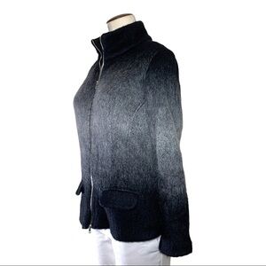 Marc Cain Knit Cardigan Jacket Sz 8 Black Gray Mohair Blend Full Zip Sweater