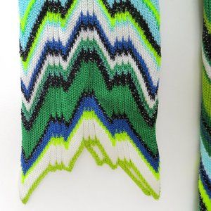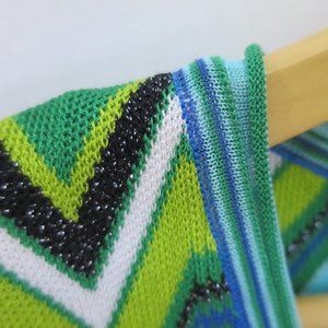 Gorgeous zig-zag knit with various greens and blues, white and sparkly black