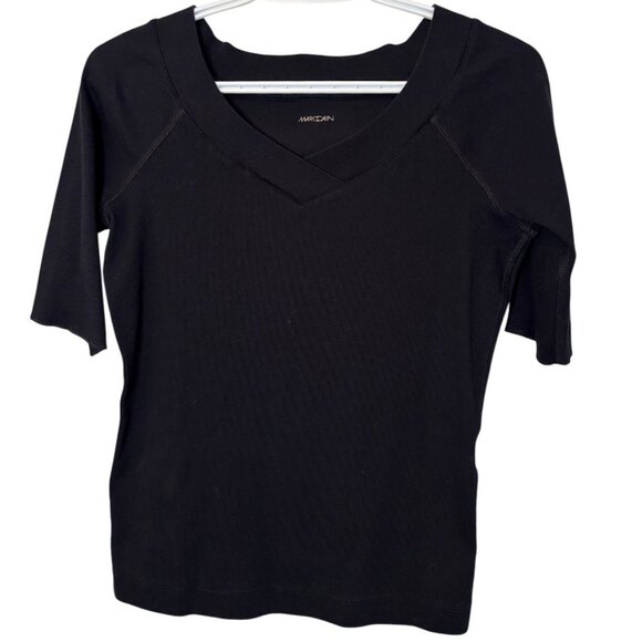 Marc Cain black three-quarter sleeve V-neck shirt size M