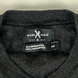 Marc Ecko Cut & Sew Sweater Men Medium 100% Merino Wool Grey V Neck Lightweight