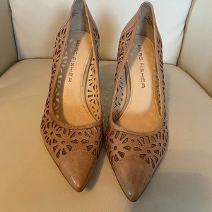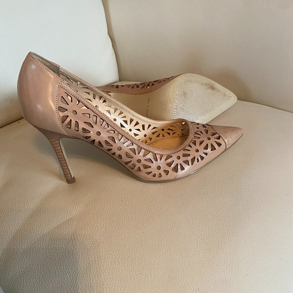Leather cut out 3" heel. Only worn a couple of times. Beautiful detailing. Size 10