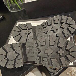 Never worn. Just tried it on. So it's in brand new condition aside from - Minor adhesive residue inside at back of ankles due to me trying to stick on heel grips to try to make it fit (didn't work for me haha - see the two last photos for that only "defect" on both shoes).