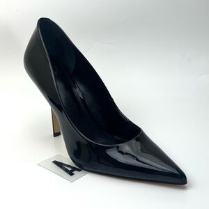 Chic black patent flats with a square-toe design. Perfect for versatile styling.