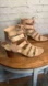 Pretty, sexy & classy sandals. Strappy front with a cross lace up design. Slip on style. Block heel. Beautiful neutral taupe colour gives these sandals lots of styling options for all of your summer events.