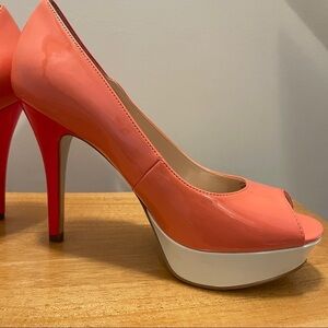 Marc Fisher Salmon Pink Peep Toe Platform Stiletto Heels - US 6