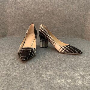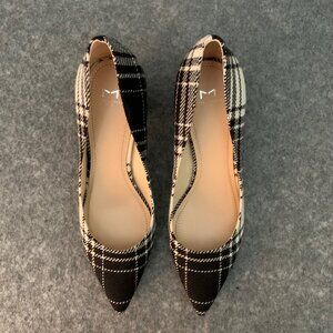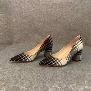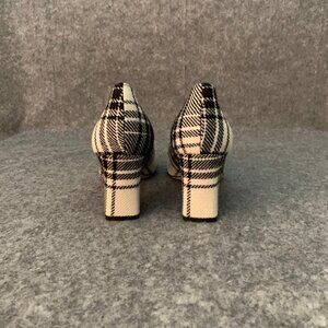 Marc Fisher Women’s Black and Off White Plaid Chunky Heel Pointed Toe Shoes