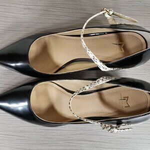 Marc Fisher Zullys Snake Embossed Mary Jane Pump, Black Leather, Womens Size 9 M