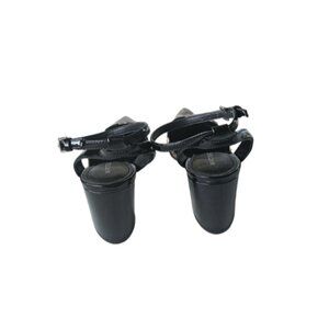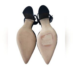 Marc Fisher ancle otjustable strap leopard print block heels pointed toe shoes, patent leather.
