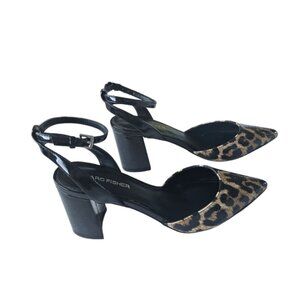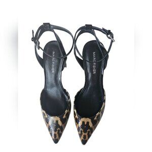 Marc Fisher ankle strap leopard print block heels pointed toe shoes 6