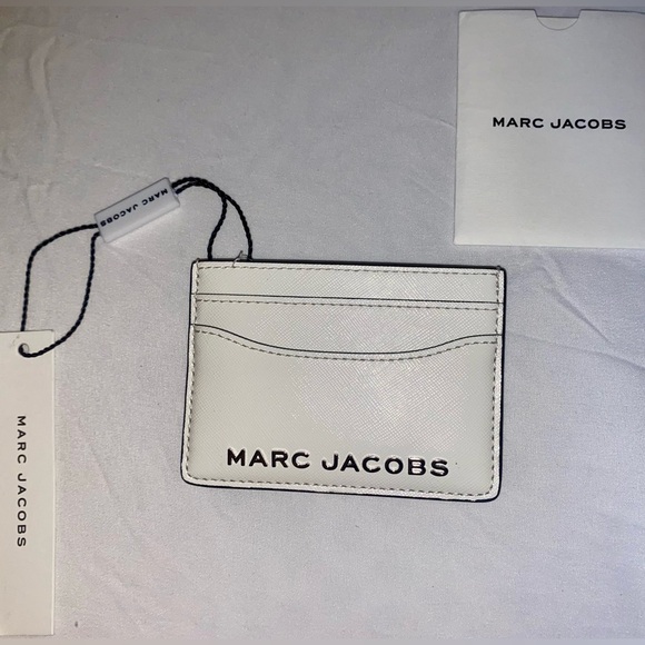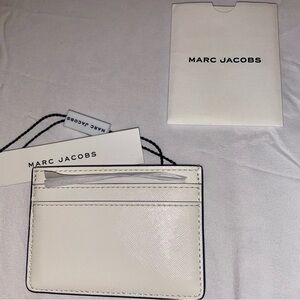 Elegant card holder by Marc Jacobs. Simple design with subtle silver logo accent.