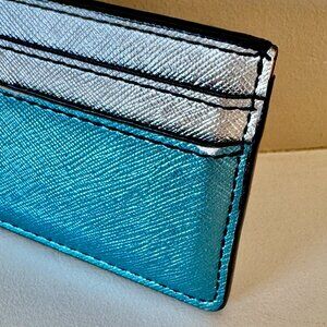 Marc Jacobs Metallic Blue and Silver Card Case Wallet