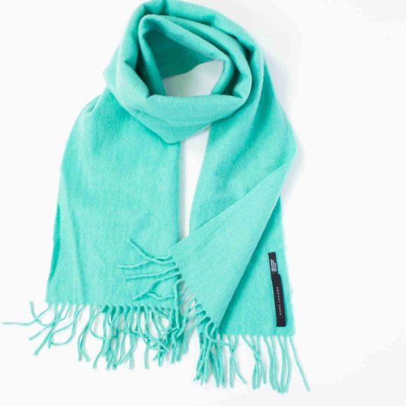This Marc Jacobs mint green cashmere scarf is incredibly soft and such a pretty colour green. It's in pristine condition as it's NEW without tags and measures 12" x 57"