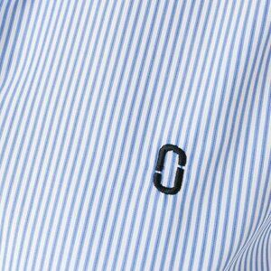 Marc Jacobs Shirt Womens 10 Blue Striped Button Up Bishop Long Sleeve Cotton