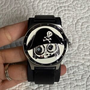 Bold Marc Jacobs Watch with a striking skull design. Features a sleek black and silver finish. Perfect for a standout look.