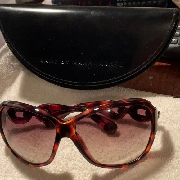 Stylish tortoise shell sunglasses by Marc Jacobs. Elegant design with a classic look. Perfect for any occasion.