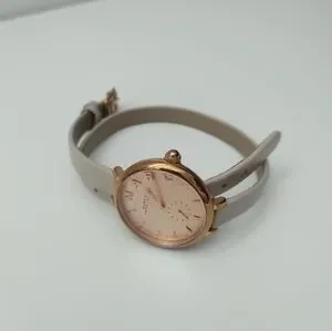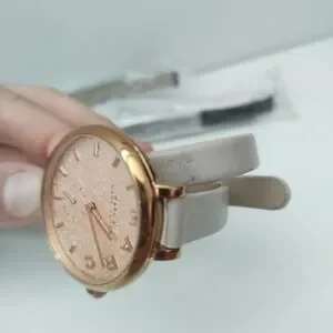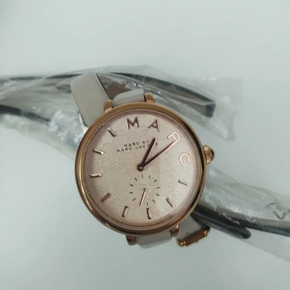 Needs battery. Purchased this rose gold/beige Marc Jacobs double wrap watch a couple of years ago. I also purchased the band from the silver/black version of the watch for times I worried about the band getting dirty. The watch is still in excellent condition. Slight wear on the band, but only on the part of the band that wraps underneath the watchface itself. I just haven't reached for it in about a year, so I think it deserves a new home.