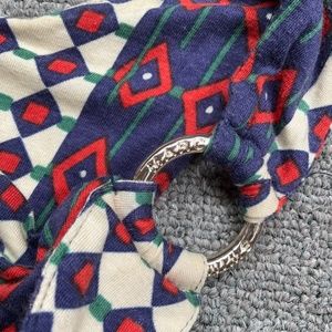 Super cute and kicky. 60% cotton plus spandex. Drawstring at hip. Shoulder straps have Marc Jacobs metal rings. Drawstrings have Marc Jacobs metal grommets.