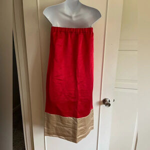 Marc Jacobs tube dress fucshia (looks more red), with beige hem. NWT Strapless, Size: small. Missing the belt but looks great without one, you can add your own statement belt. Price reflects this. This dress is so versatile you can even wear it as a maxi skirt. Originally $298 US Equivalent to $ 408 CAD