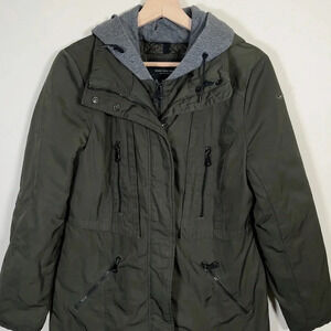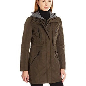 WHAT: A does-it-all essential from marc new York, this transitional topper features a sporty knit hood and lots of pockets for a versatile coat that lets you brave the elements in casual-cool style