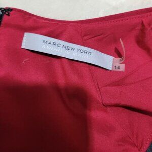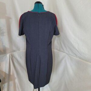 Marc New York by Andrew Marc Gray Pencil Dress, Red Striped Shoulders - Size 14