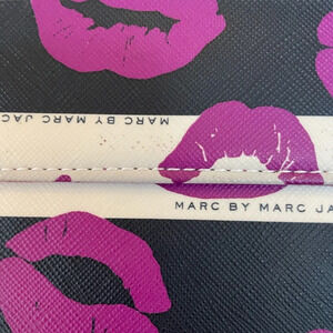 Very fun Max Book Air laptop cover from Marc Jacobs. Graphic lips accentuate this striped case. Interior is lined with a flicked material to keep your laptop safe.