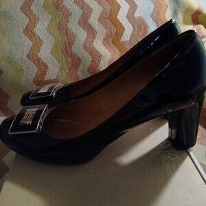 Classic Marc by Marc black patent leather heels, with Signature logo plaque.