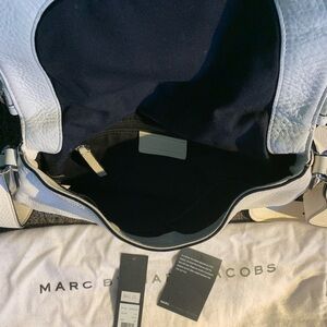 Marc by Marc Jacobs Crossbody Bag Neutrals Leather Silver-Tone Hardware Single Adjustable Shoulder Strap Single Exterior Pocket Canvas Lining & Three Interior Pockets Snap Closure at Front.