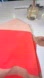 Marc by Marc Jacobs tan and orange-red striped crew neck sweater. Orange-red fabric is 100% cotton. Tan fabric is sheer cotton nylon blend.