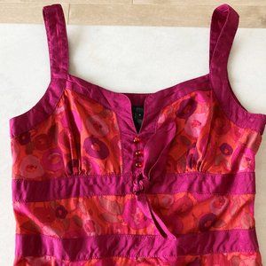 Marc by Marc Jacobs orange & pink floral print midi dress, silk magenta trim (4)
