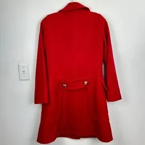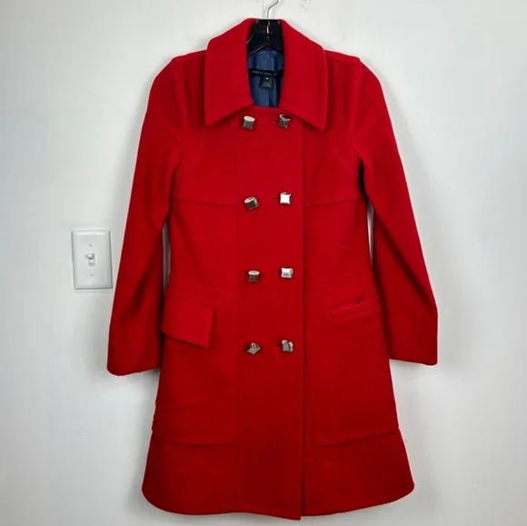 gorgeous red wool marc jacobs jacket with gold square buttons. double button design