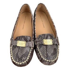 Marc by Marc Jacobs Grey Leather Snakeskin Driving Loafers Size 36