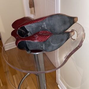Marcello Pace snakeskin style pointy boots in rich mahogany shade.