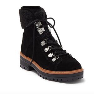 March Fisher Faux Shearling Trimmed Leather Combat Boot (Women) size