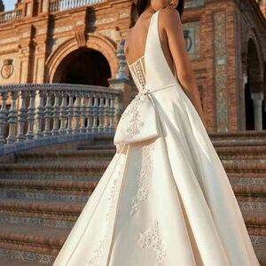 Marchesa for Pro Novias V Neck Satin Wedding Dress