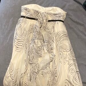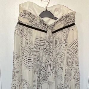 Marchese Silk Taffeta Strapless Black + White Dress, Black Beaded Empire Waist. Elegant strapless dress with wave pattern. EUC. Perfect for special occasions.